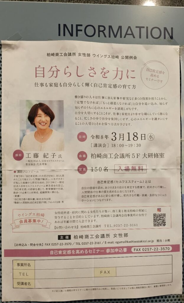 2026年3月18日、柏崎商工会議所女性部ウィングス柏崎様の公開例会にて、講師として登壇させていただきました。